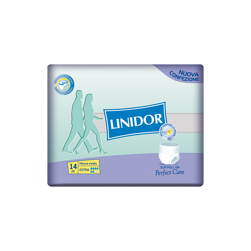 Slip Pull On Extra, indicato per persone attive, parzialmente autonome o assistite con un’incontinenza medio/grave, si indossano come una mutandina.